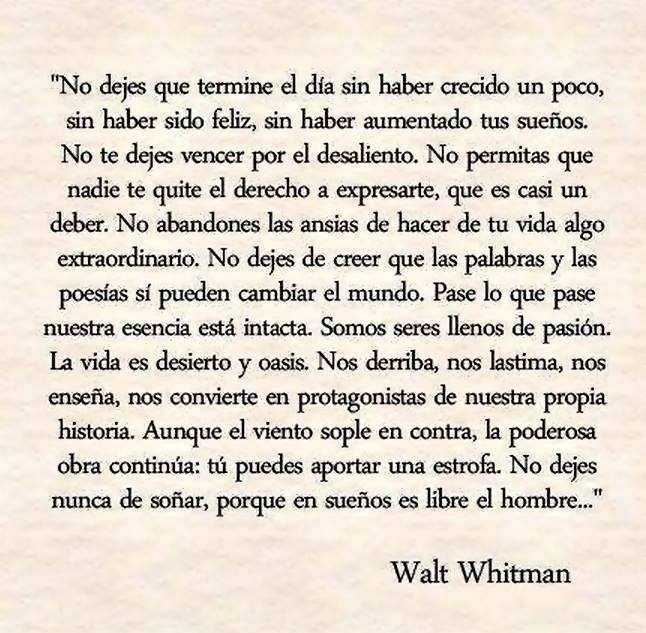 […] un comentario Carpe Diem Walt Whitman nos anima a aprovechar el momento (Carpe diem), independientemente de lo que ocurre a […]