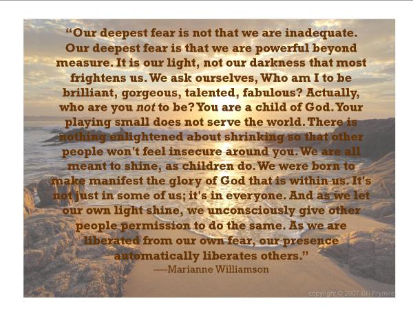 Our deepest fear is that we are powerful beyond measure.