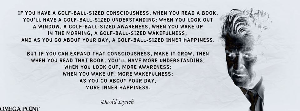 “Si tienes una conciencia del tamaño de una pelota de golf, cuando leas un libro, tendrás una comprensión del tamaño de una pelota de golf. Cuando miras afuera de una ventana, una visión del tamaño de una pelota de golf. Cuando te levantes por la mañana, despertaras del tamaño de una pelota de golf y mientras vas por tu día, tendrás una felicidad interior del tamaño de una pelota de golf. Pero si puedes expandir esa conciencia, hacerla crecer, entonces cuando leas ese libro, tendrás mas comprensión. Cuando mires afuera, mas visión. Cuando te levantes, estarás mas despierto. Y mientras vayas por tu día, tendrás mas felicidad interior.”